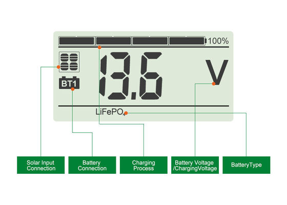 Regulador de carga de bateria solar de 5 estágios para sistemas de bateria de lítio AGM LFP
