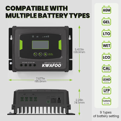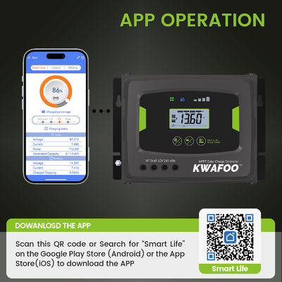 O controlador solar KWAFOO 40Amp MPPT é de montagem na parede, permitindo uma fácil instalação e benefícios de poupança de espaço.O controlador está equipado com mecanismos de proteção abrangentes para proteger o sistema solar, incluindo proteção contra sobrecarga, proteção contra curto-circuito e proteção contra polaridade inversa.
