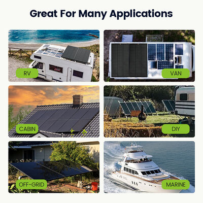 The 130W All Black Solar Panel delivering a full powerful 130W output under STC, this all‑black solar panel combines strong energy generation with a sleek, unified aesthetic. Its robust 35 mm full‑black frame ensures durability against outdoor elements and mechanical stress, while the seamless black-on-black design enhances visual appeal without compromising performance. Engineered to balance striking looks and reliable power, it is ideal for RVs, camping rooftops, and any setup where both efficiency and appearance matter.